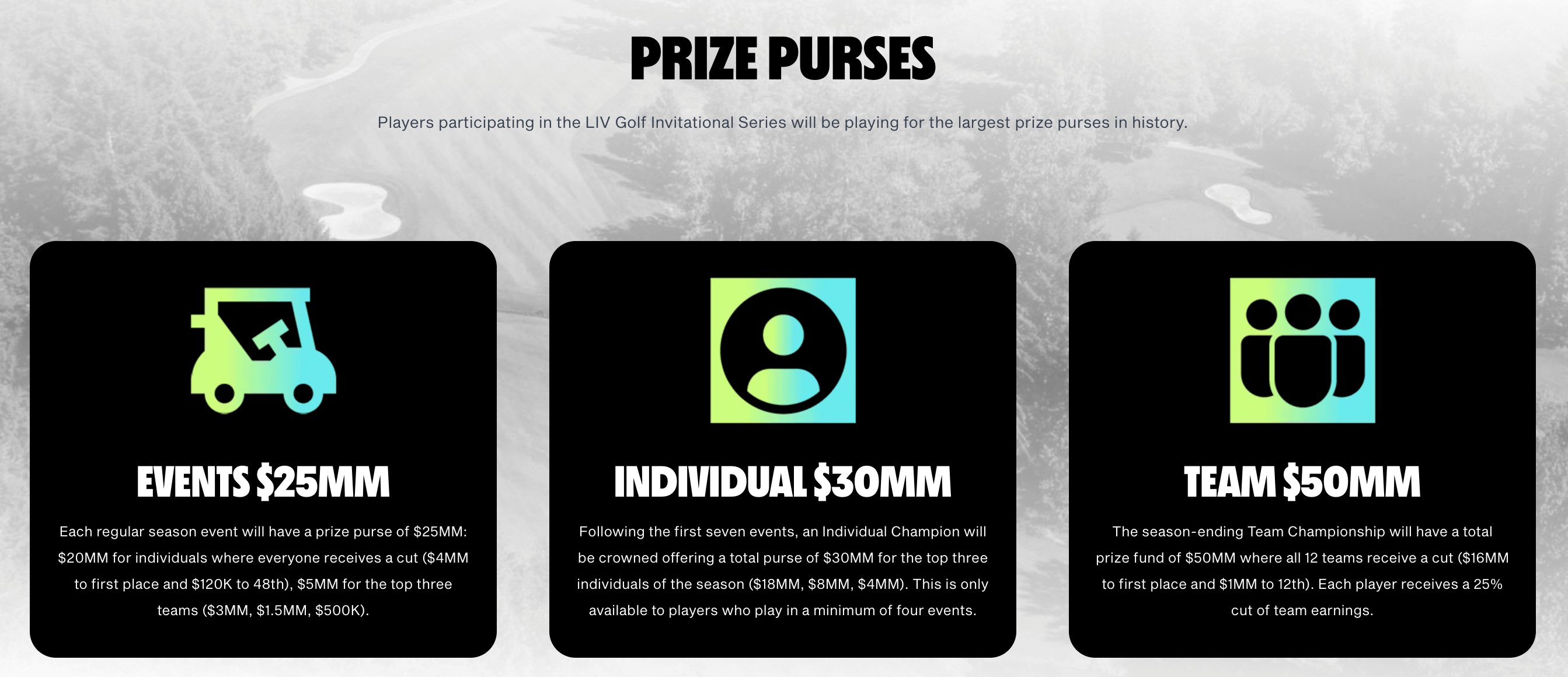 2022 리브 골프 인비테이셔널 대회 개인전 경기 방식 포인트 우승상금