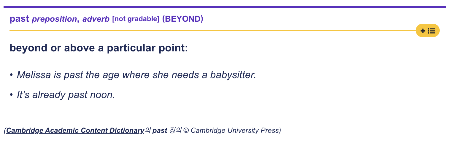 - 영어에서 past 는 단순한 위치 개념을 넘어,
